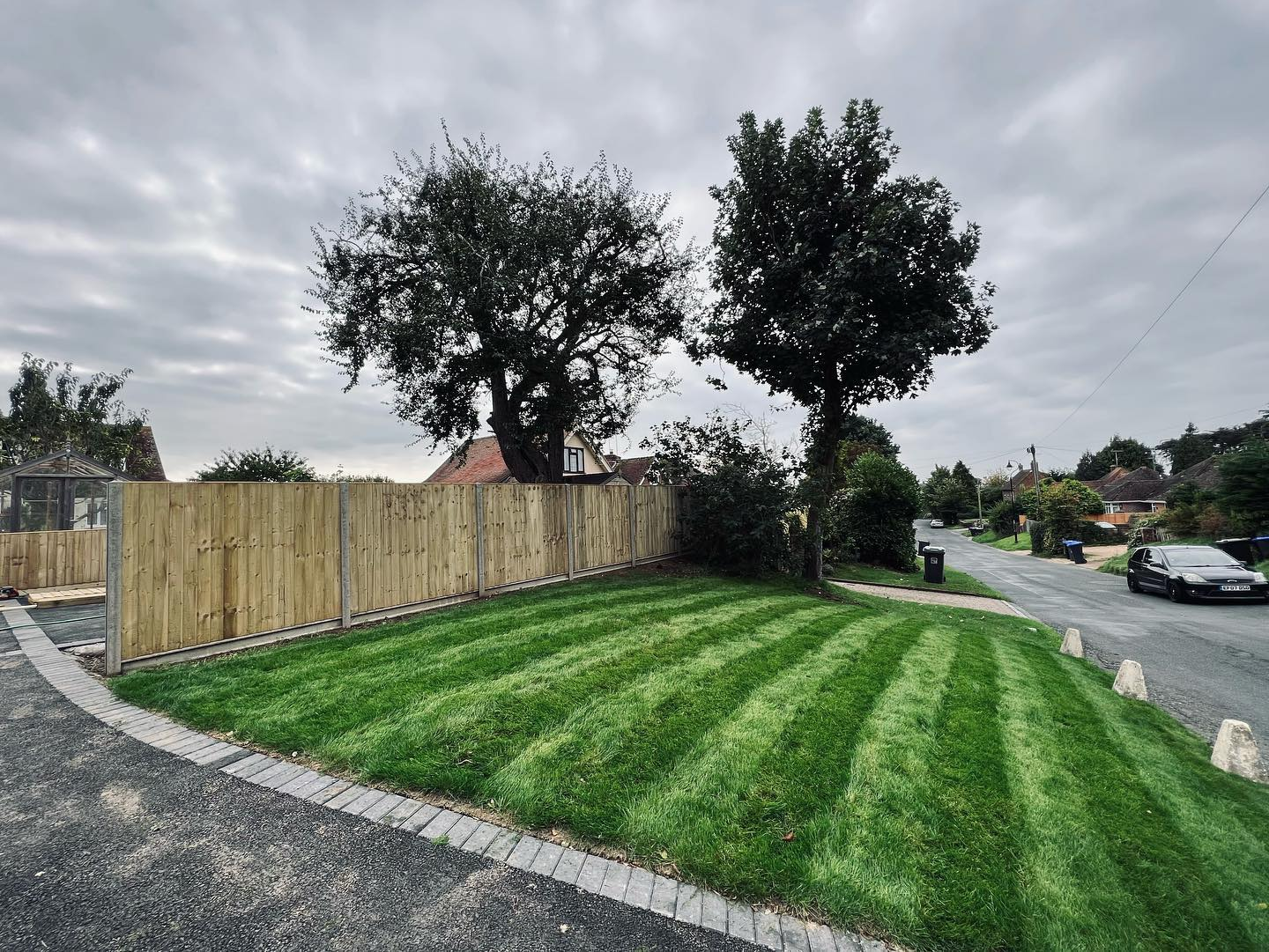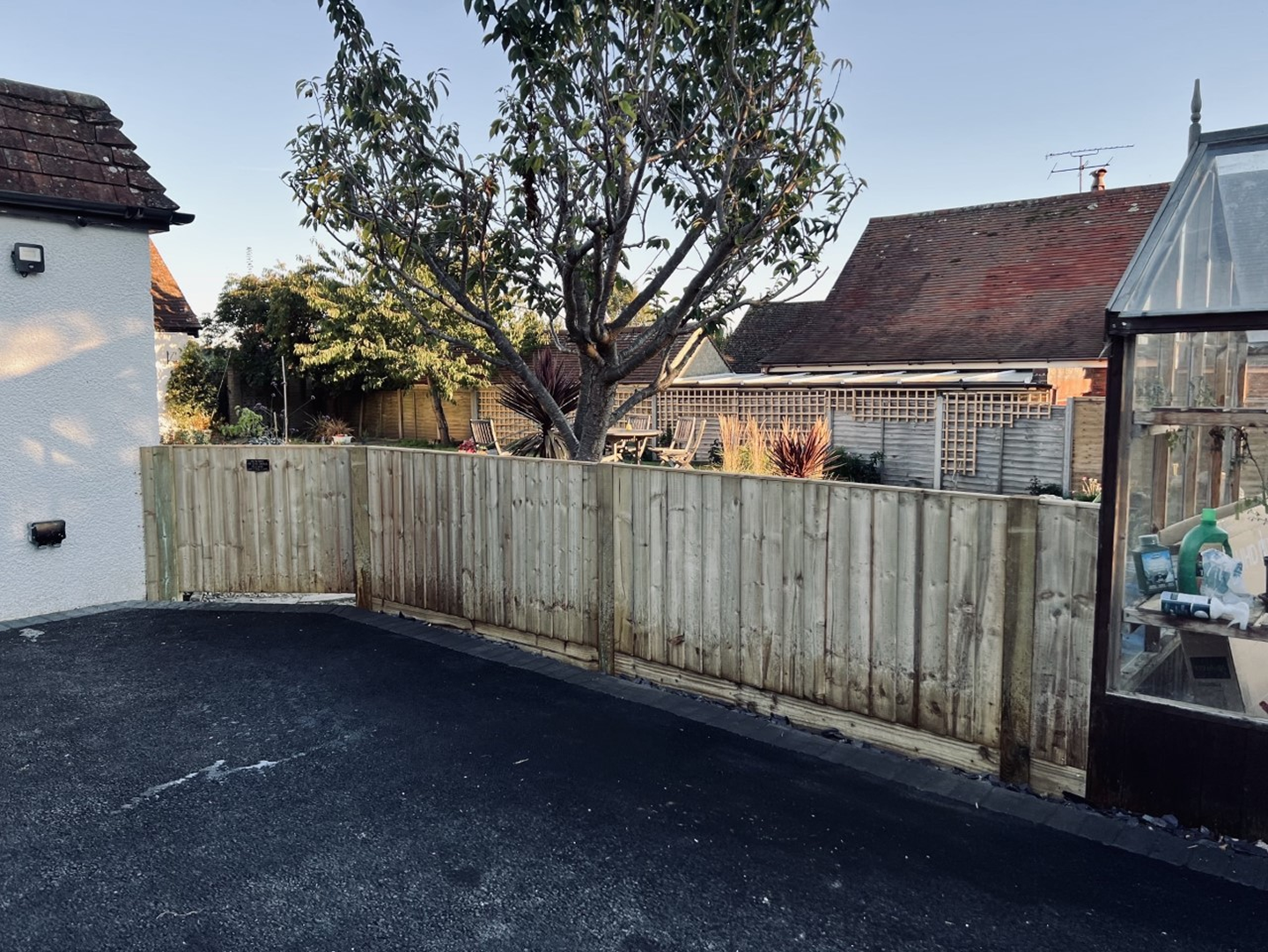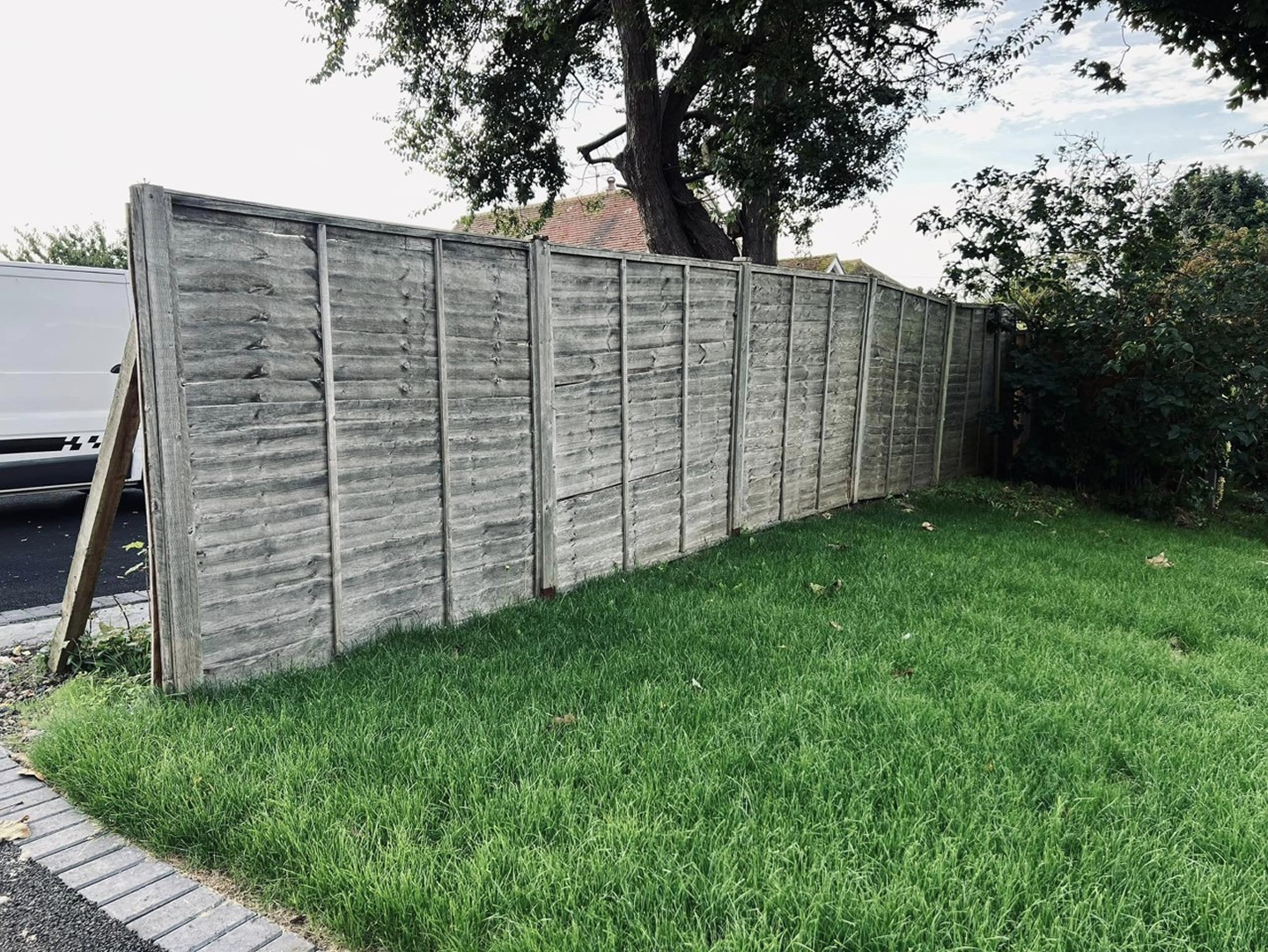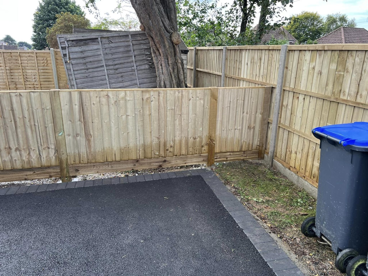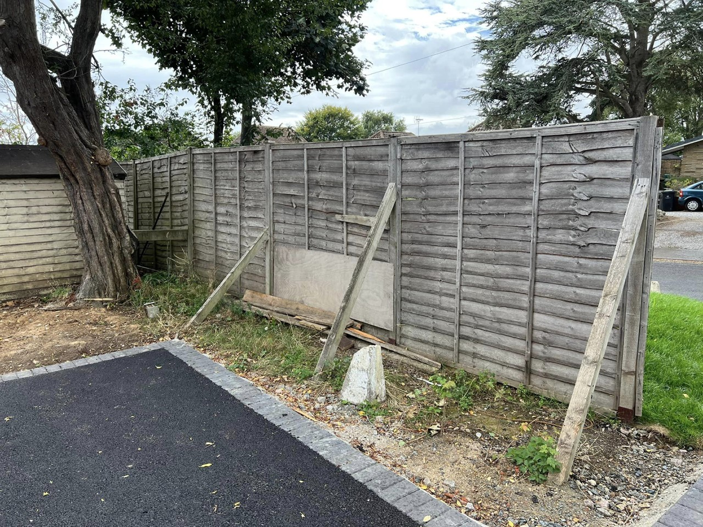 The original fence was removed and replaced, using concrete posts and gravel boards and closeboard fence panels. Inside, we replaced the short lawn fence and gate.