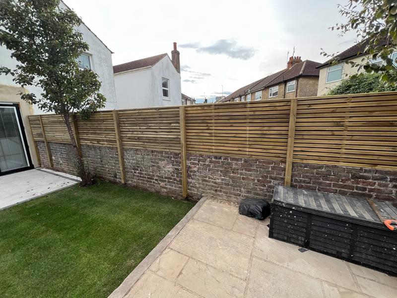The new fence was installed onto an existing wall.