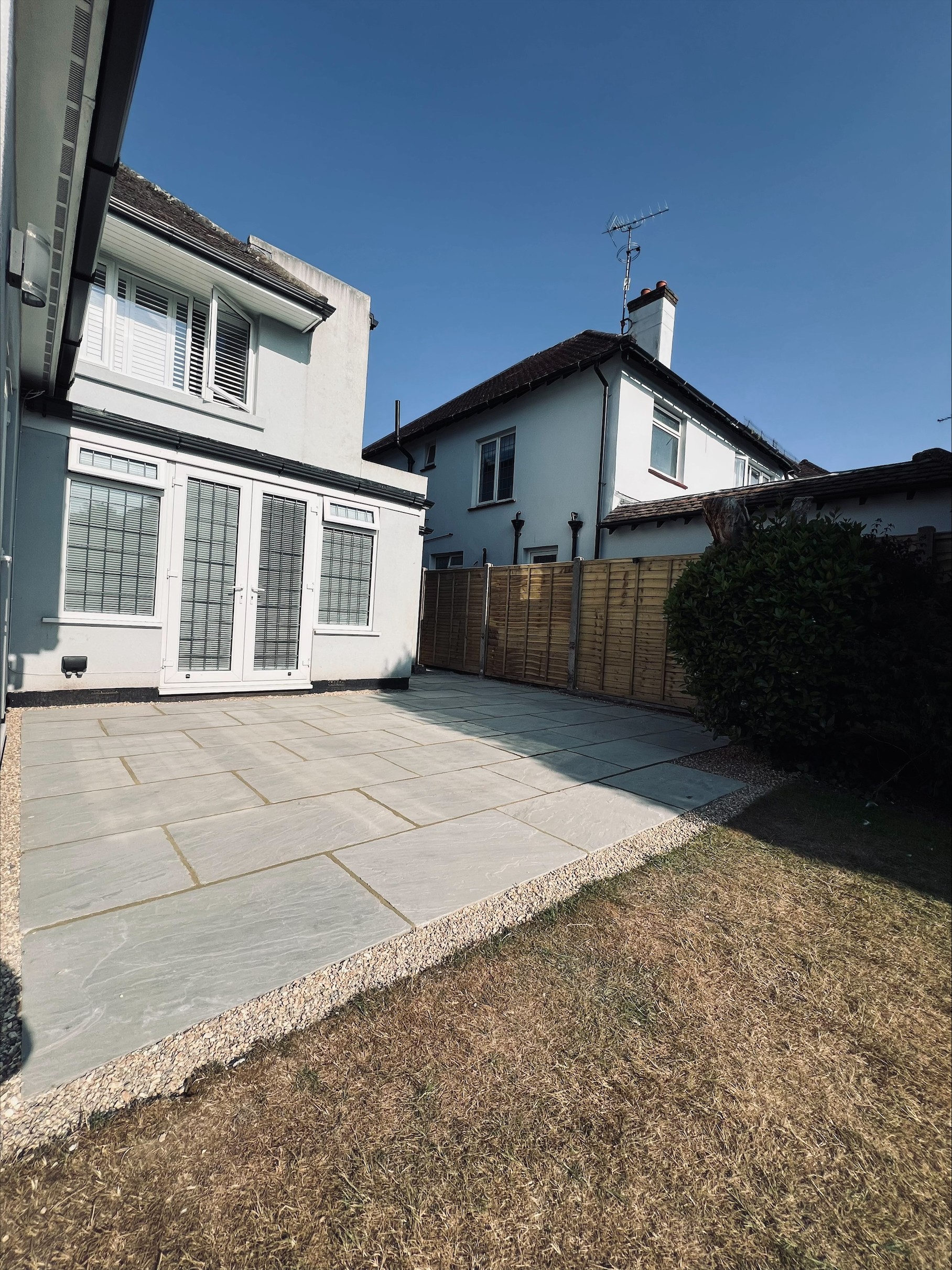 Here we installed a beautiful stone slab patio.