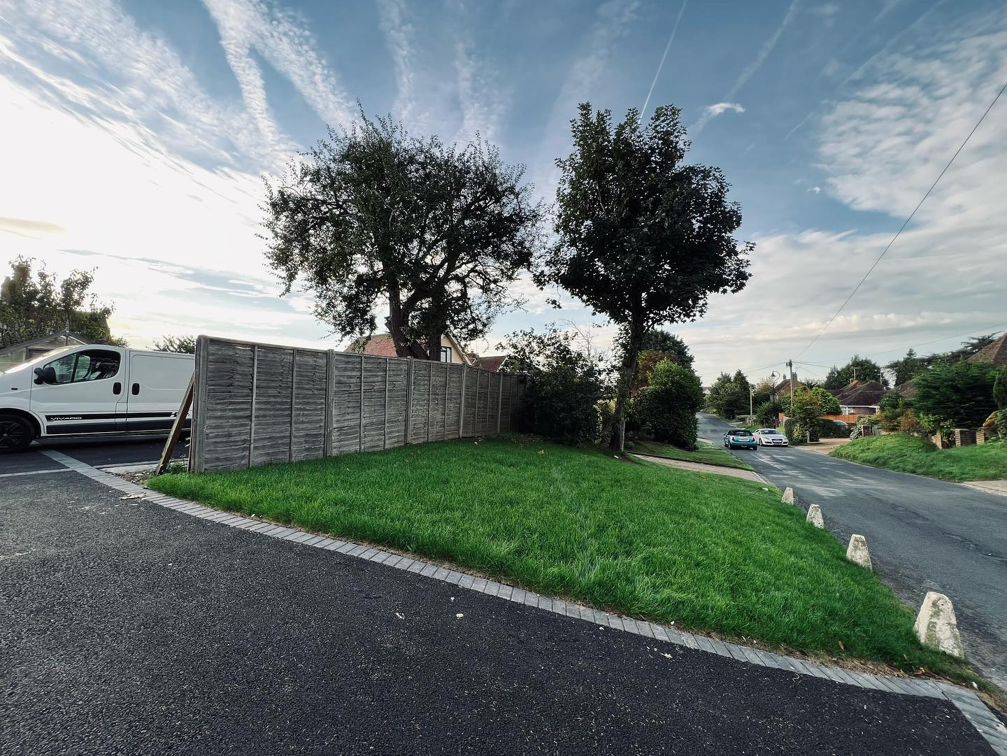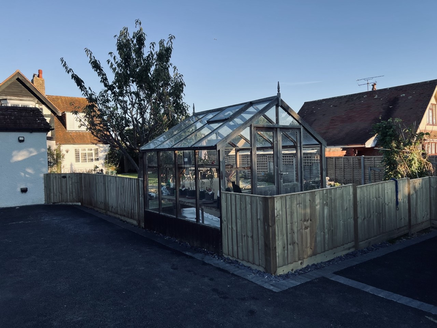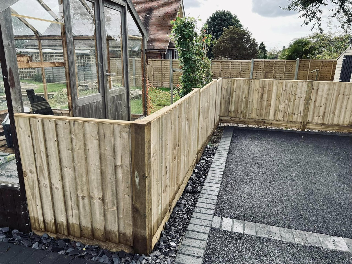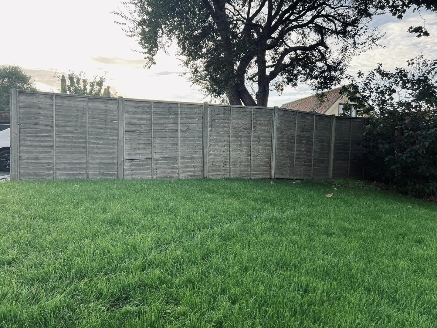 The original fence was removed and replaced, using concrete posts and gravel boards and closeboard fence panels. Inside, we replaced the short lawn fence and gate.